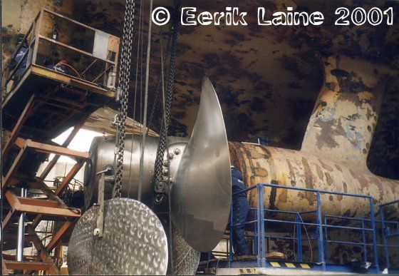 The starboard propeller being mantenanced in Vuosaari (31.05.2001) Photo: Eerik Laine