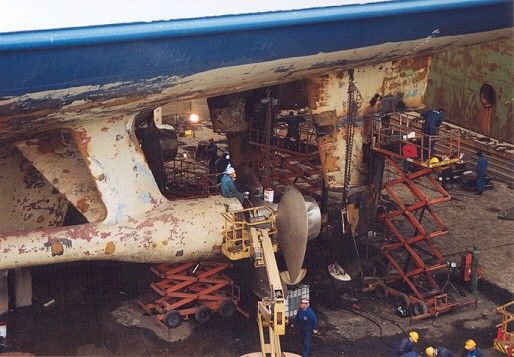 Propeller maintenance in Vuosaari drydock, 2001. Photo: Sami Takala